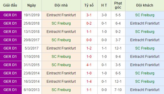 Lịch sử đối đầu Freiburg vs Eintracht Frankfurt