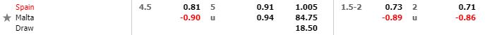 Sau 8 trận đấu, Malta mới chỉ có 2 lần được ăn mừng bàn thắng. Và cả 2 bàn thắng mà họ ghi được đều là vào lưới của đảo Faroe. Thế nên, Tây Ban Nha sẽ phải một mình gánh vác tỷ lệ tài xỉu 5 hòa full time mà nhà cái đưa ra. Ra sân với mục đích chính là thử nghiệm, việc các cầu thủ Tây Ban Nha chỉ đá giữ chân là chuyện bình thường. Cả 8 trận đấu của Tây Ban Nha đều chưa vượt qua mức 5 bàn/trận. Vì vậy, đặt cửa Xỉu người chơi sẽ có nhiều cơ hội thắng kèo.