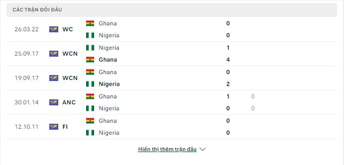 Thống kê phong độ gần đây Nigeria vs Ghana