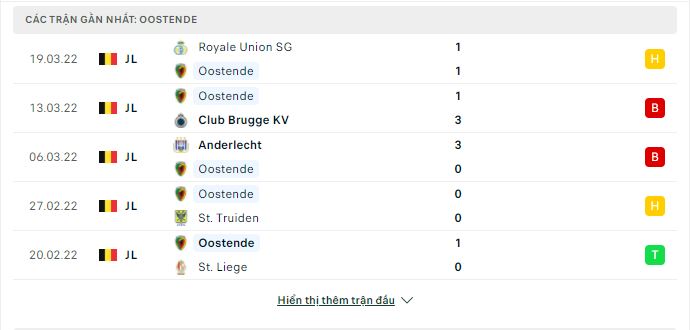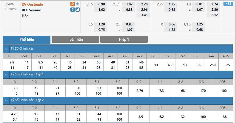 Bảng tỷ lệ kèo bóng đá Oostende vs Seraing