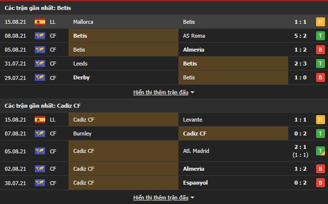 Ngoài ra, lịch sử đối đầu trong quá khứ cho thấy sự lép vế hoàn toàn đến từ Cadiz. Cụ thể, 14 lần chạm mặt nhau gần nhất giữa hai đội, Real Betis thắng tới 10 và chỉ để chia điểm 4 trận trước Cadiz. Do đó, nhiều khả năng Real Betis sẽ giành được chiến thắng trận này. Kèo châu Á đội chủ nhà chấp 1 và tài xỉu 2.5, chọn đội chủ nhà và xỉu đặt kèo hợp lí hơn cả.