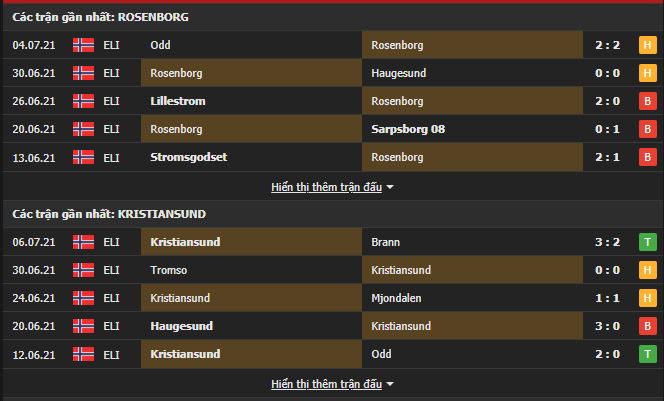 Phong độ gần đây Rosenborg vs Kristiansund:
