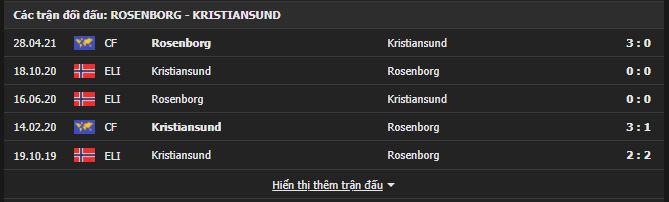 Thành tích đối đầu Rosenborg vs Kristiansund: