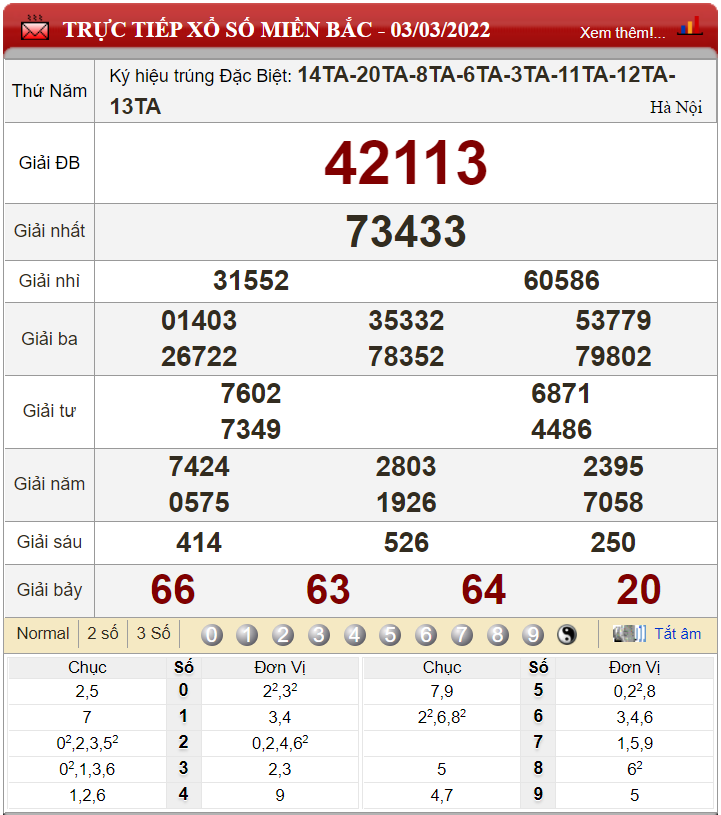 Kết quả cầu lô theo xổ số miền Bắc ngày 03/03/2022