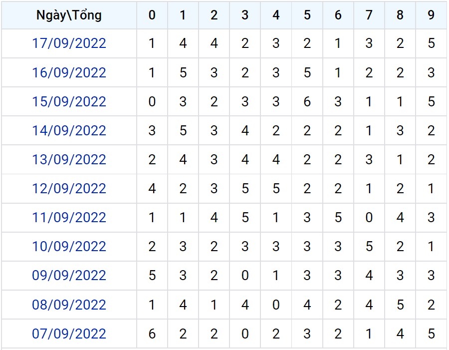 Thống kê loto XSMB theo tổng tính đến ngày 17/9/2022