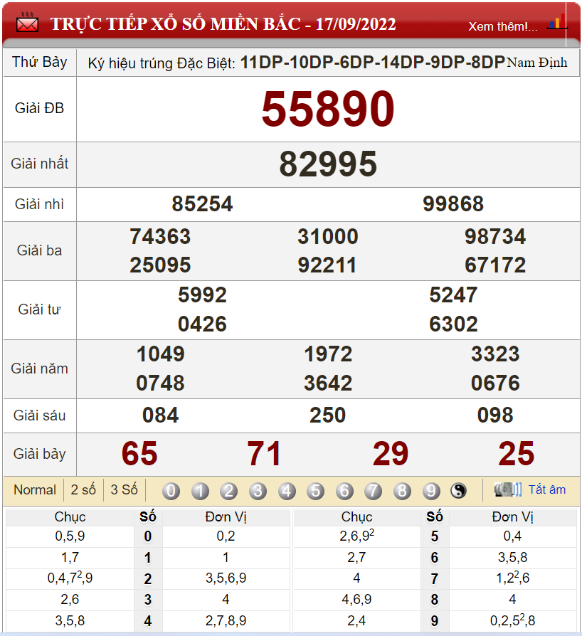 Kết quả cầu lô theo xổ số miền Bắc ngày 17/9/2022