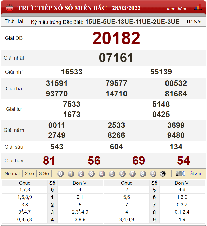Kết quả cầu lô theo xổ số miền Bắc ngày 28/3/2022