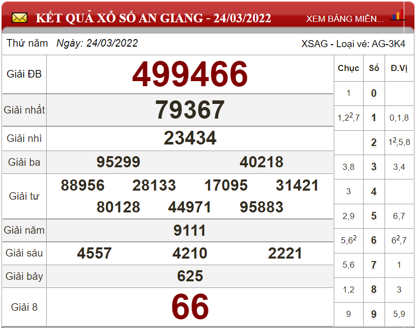 Kết quả lô đề theo xổ số An Giang ngày 24/3/2022