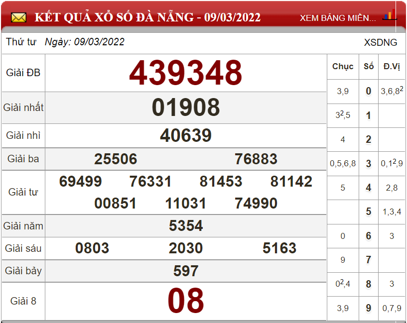 Kết quả lô đề theo xổ số Đà Nẵng ngày 09/03/2022