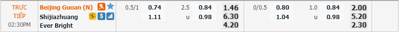 - Kèo châu Á hiệp 1: Beijing Guoan -0.25