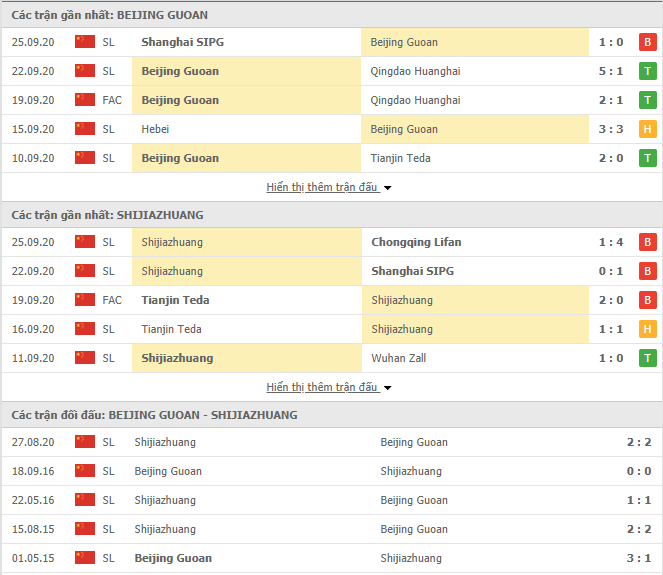 Phong độ gần đây & Thành tích đối đầu Beijing Guoan vs Shijiazhuang Y. J.
