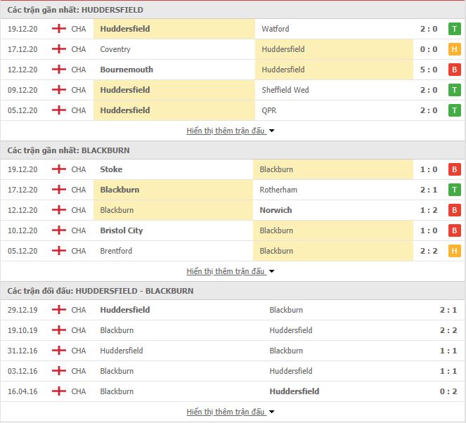 Phong độ gần đây & Thành tích đối đầu Huddersfield vs Blackburn
