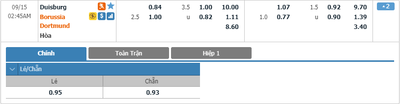 Tỷ lệ kèo trực tuyến trận đấu MSV Duisburg vs Borussia Dortmund