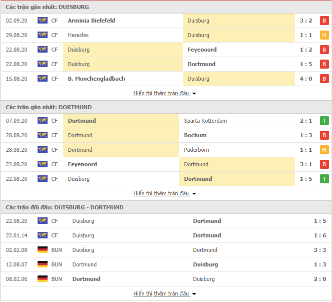Phong độ gần đây & Thành tích đối đầu MSV Duisburg vs Borussia Dortmund