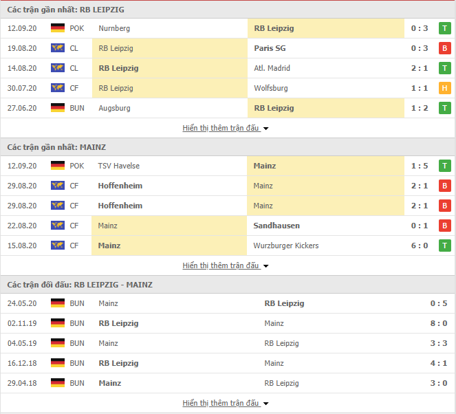 Nên nhớ RB Leizig không phải đội bóng phụ thuộc vào những cá nhân và thống kê từ quá khứ cũng cho thấy hàng thủ của FSV Mainz 05 sẽ có một ngày thi đấu vất vả ngay trong khoảng thời gian nửa đầu trận đấu. Ở 5 lần làm khách trên sân Red Bull Arena gần nhất, hàng thủ của đội khách đều phải nhận ít nhất 2 bàn thua trước khi hiệp 1 khép lại. Và đương nhiên việc thầy trò HLV Achim Beierlorzer tiếp tục nhận một kết thúc tương tự cũng là kịch bản đã được dự đoán trước.