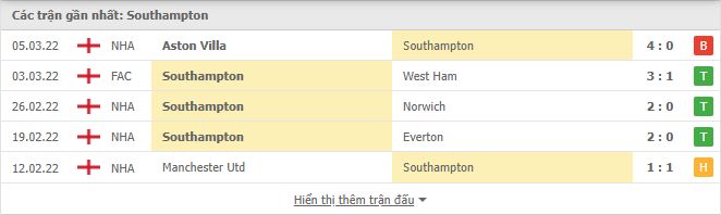 Thống kê phong độ gần đây Southampton vs Newcastle