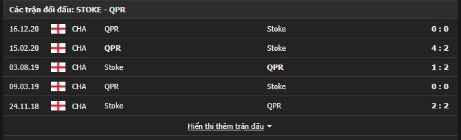 Thành tích đối đầu Stoke City vs QPR: