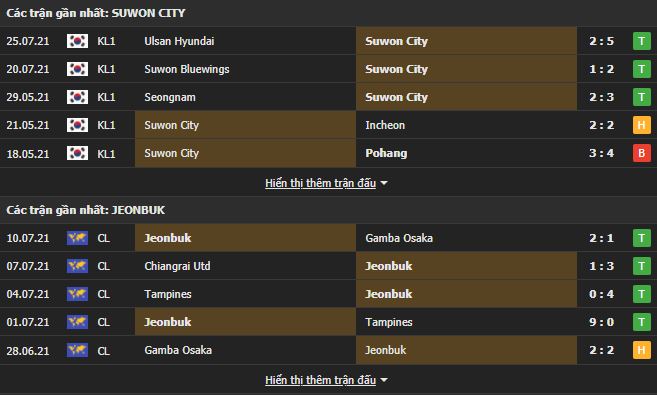 Phong độ gần đây Suwon City vs Jeonbuk Motors:
