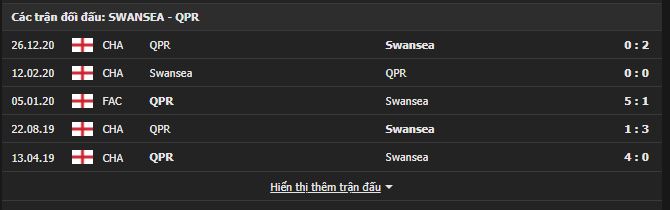 Thành tích đối đầu Swansea vs QPR: