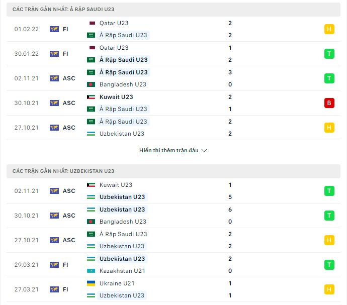 Phong độ gần đây U23 Saudi Arabia vs U23 Uzbekistan: