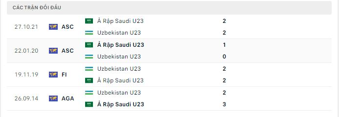 Thành tích đối đầu U23 Saudi Arabia vs U23 Uzbekistan: