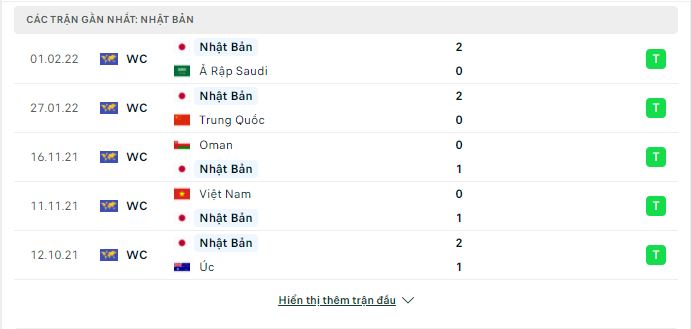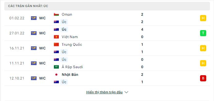 Thống kê phong độ gần đây Úc vs Nhật Bản