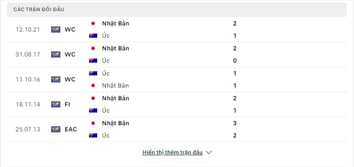 Thành tích đối đầu Úc vs Nhật Bản