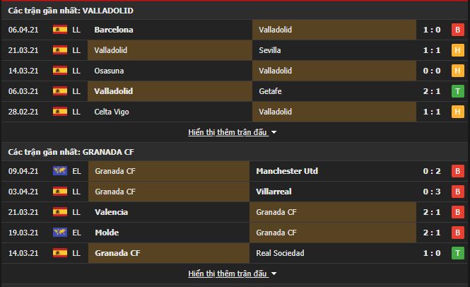 Phong độ gần đây Valladolid vs Granada: