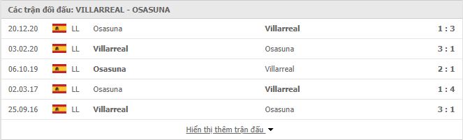 Thành tích đối đầu Villarreal vs Osasuna