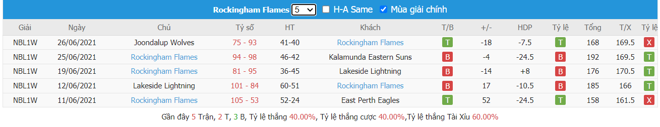 Thống kê cũng chỉ ra mặc dù được đánh giá cao ở trận đấu tới nhưng Rockingham Flames vốn vẫn không phải là đội bóng quá mạnh về tấn công khi chỉ ghi được trung bình 85 điểm mỗi trận trong 3 trận đón khách đã qua, trong khi ở hàng phòng ngự với những cú block sấm sét và những pha rebound chỉ bị mất trung bình 82 điểm mỗi trận trong thời gian kể trên. Từ đó dẫn đến 6 trên 7 trận ra sân gần nhất của Rockingham Flames cũng có kết quả chung cuộc về xỉu. Như vậy cửa xỉu vẫn là một lựa chọn sáng hơn với giới đầu tư ở trận này, nhất là khi cũng đã có tới 4 trên 5 trận so tài gần nhất của hai bên cũng có kết quả chung cuộc về xỉu.