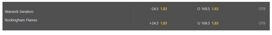 Bảng tỷ lệ kèo Warwick Senators vs Rockingham Flames