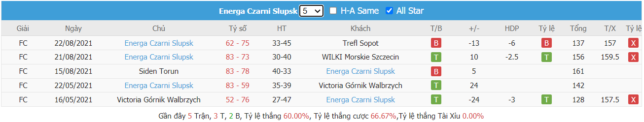 Phong độ gần đây Zastal Zielona Góra vs STK Czarni Słupsk